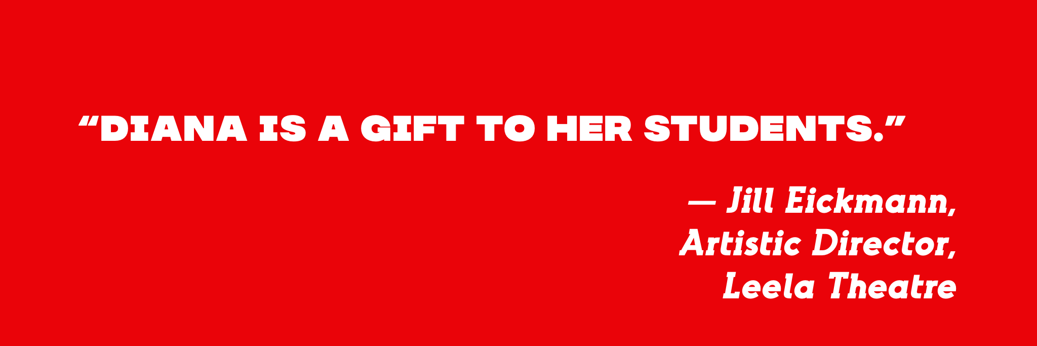Diana’s had the privilege of leading Improv workshops, intensives/master classes at: Improv Utopia's Camp West, 2023 Queen City Comedy Experience, IMPRIDE San Diego, in San Francisco, at Salt Lake City DuoFest, Queen City Comedy, 2nd Best Comedy Fest, Improv MKE, New Orleans Improv Festival, Denver Improv Festival, Tucson Comedy Arts Festival, 2022 & 2023 Vintage Improv Festival (with Jane Morris, Jeff Michalski, Greg Tavares, Lisa Lynn).