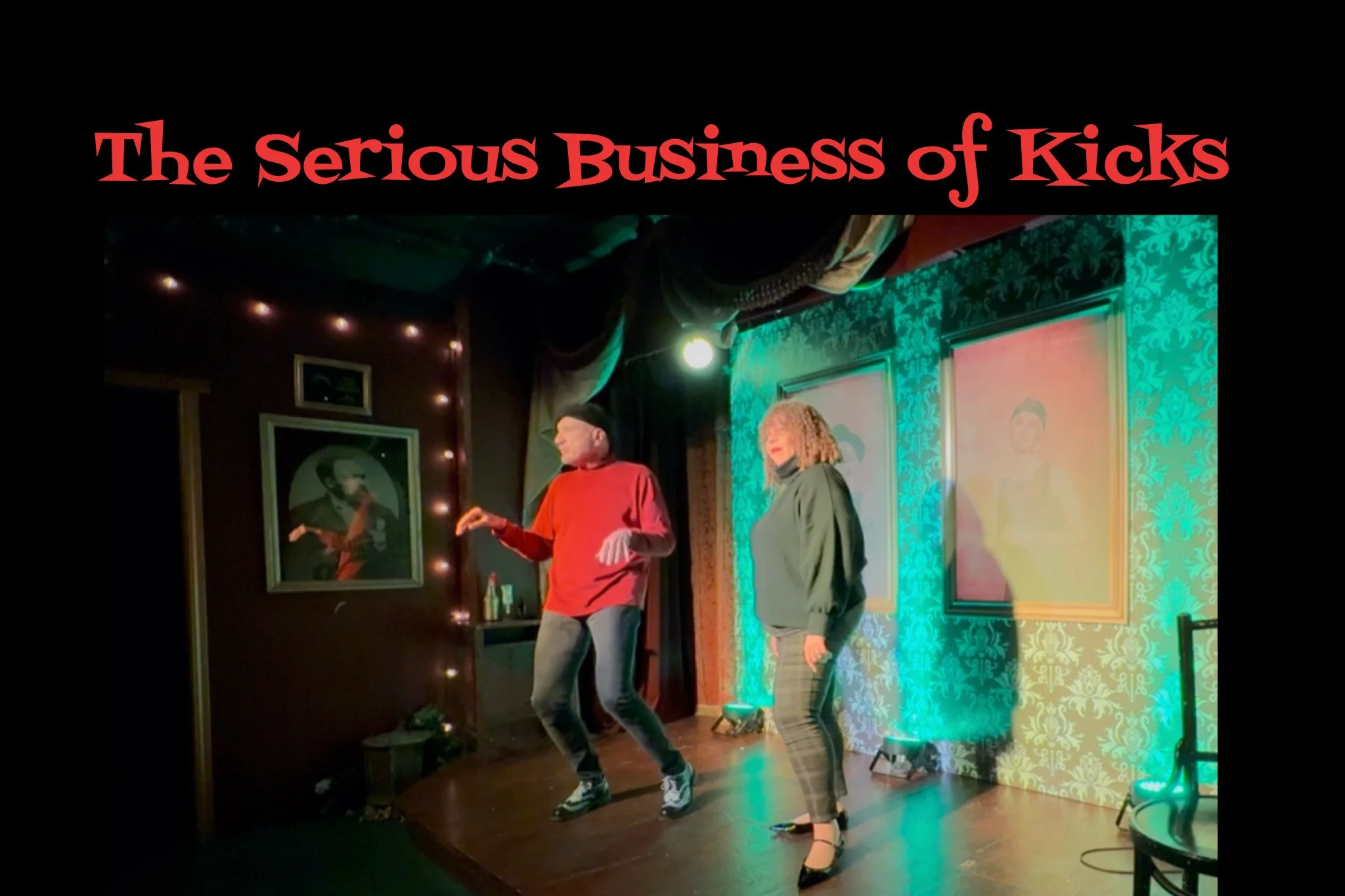 In addition to working together in The Serious Business of Kicks, Diana Brown and Michael Shaffer also perform in the improvised Shakespeare Trio Gamesome Frolic.
